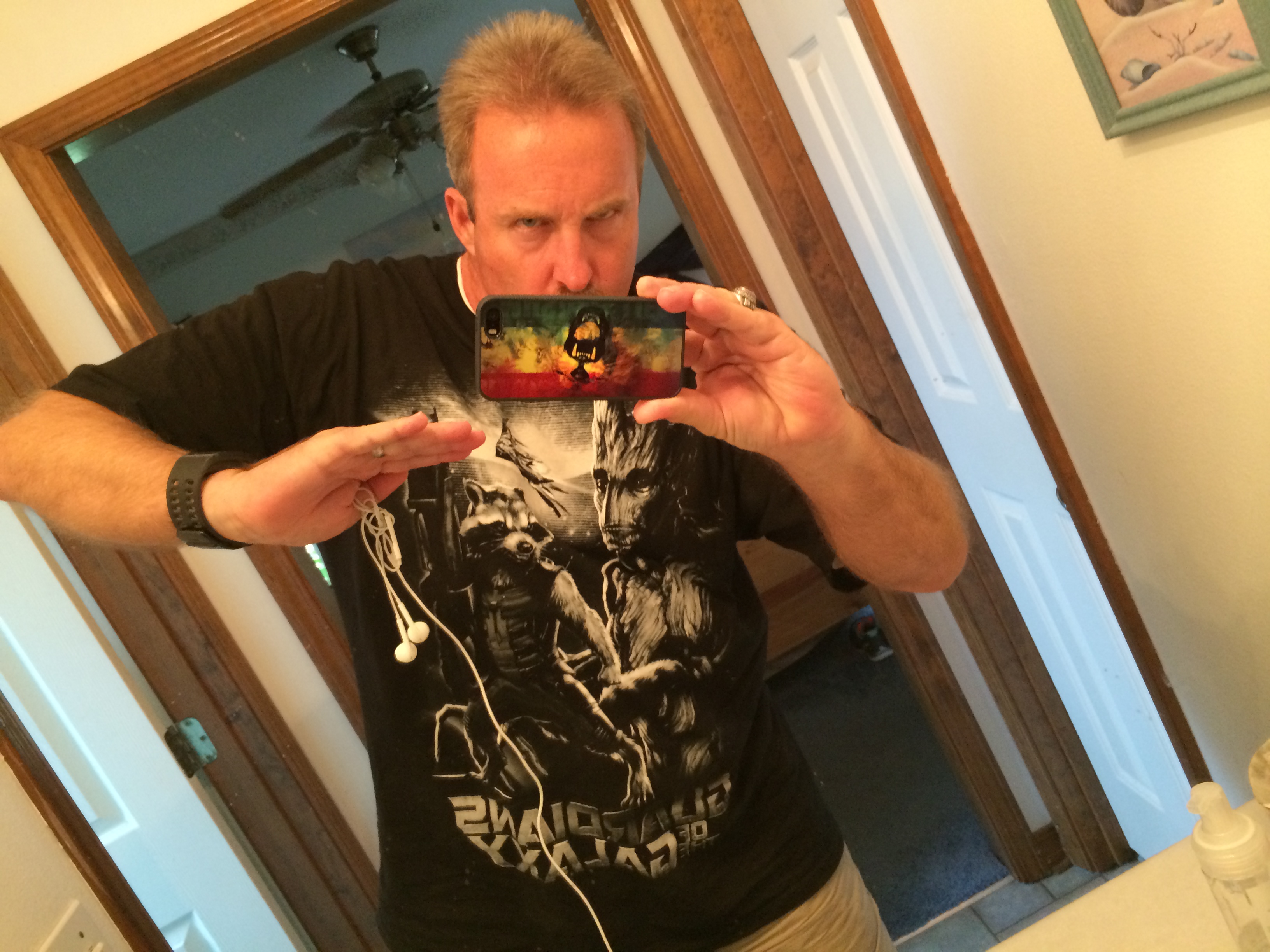 of a Guardians of the Galaxy shirt..