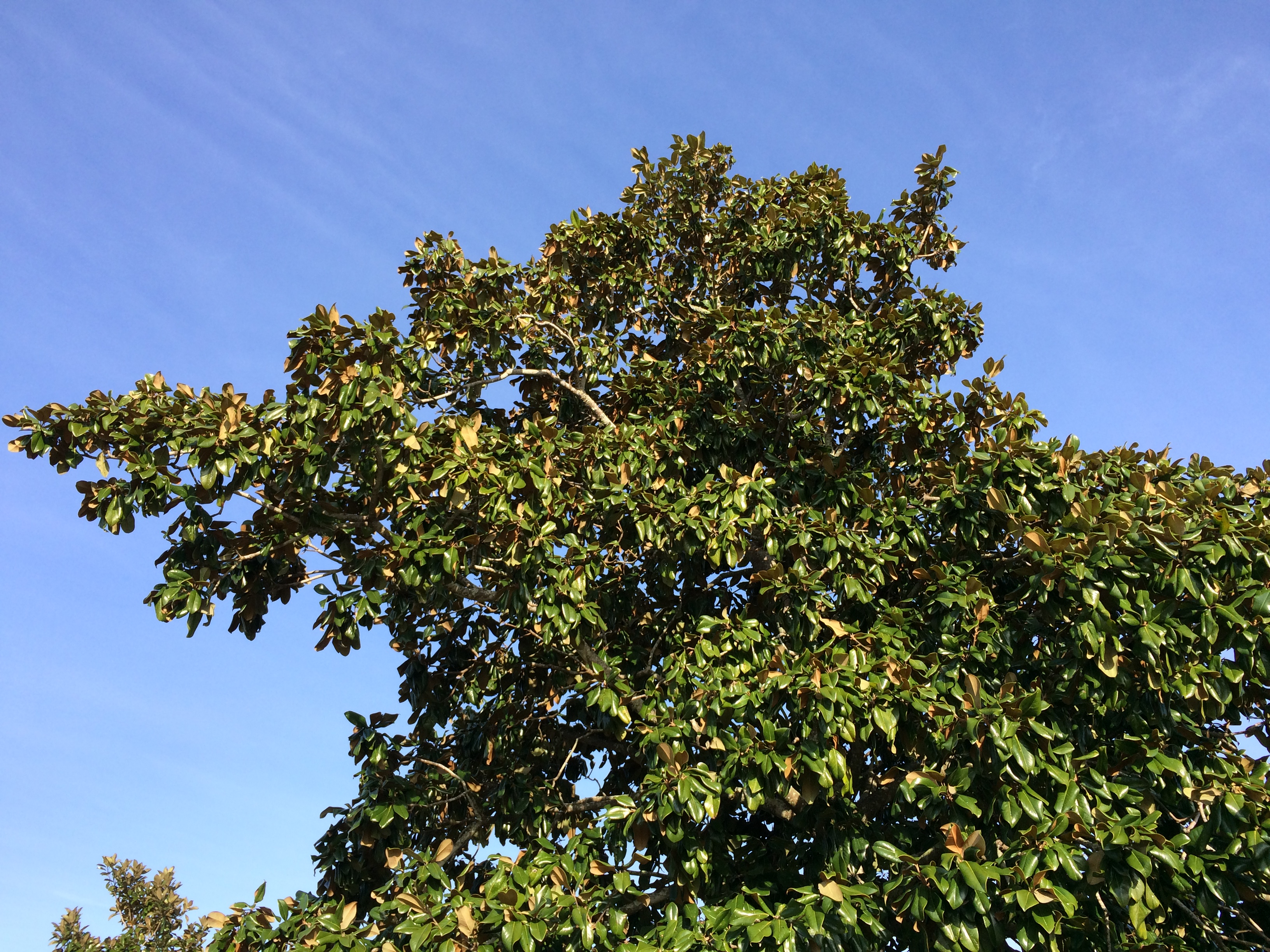 just beyond the leaves and