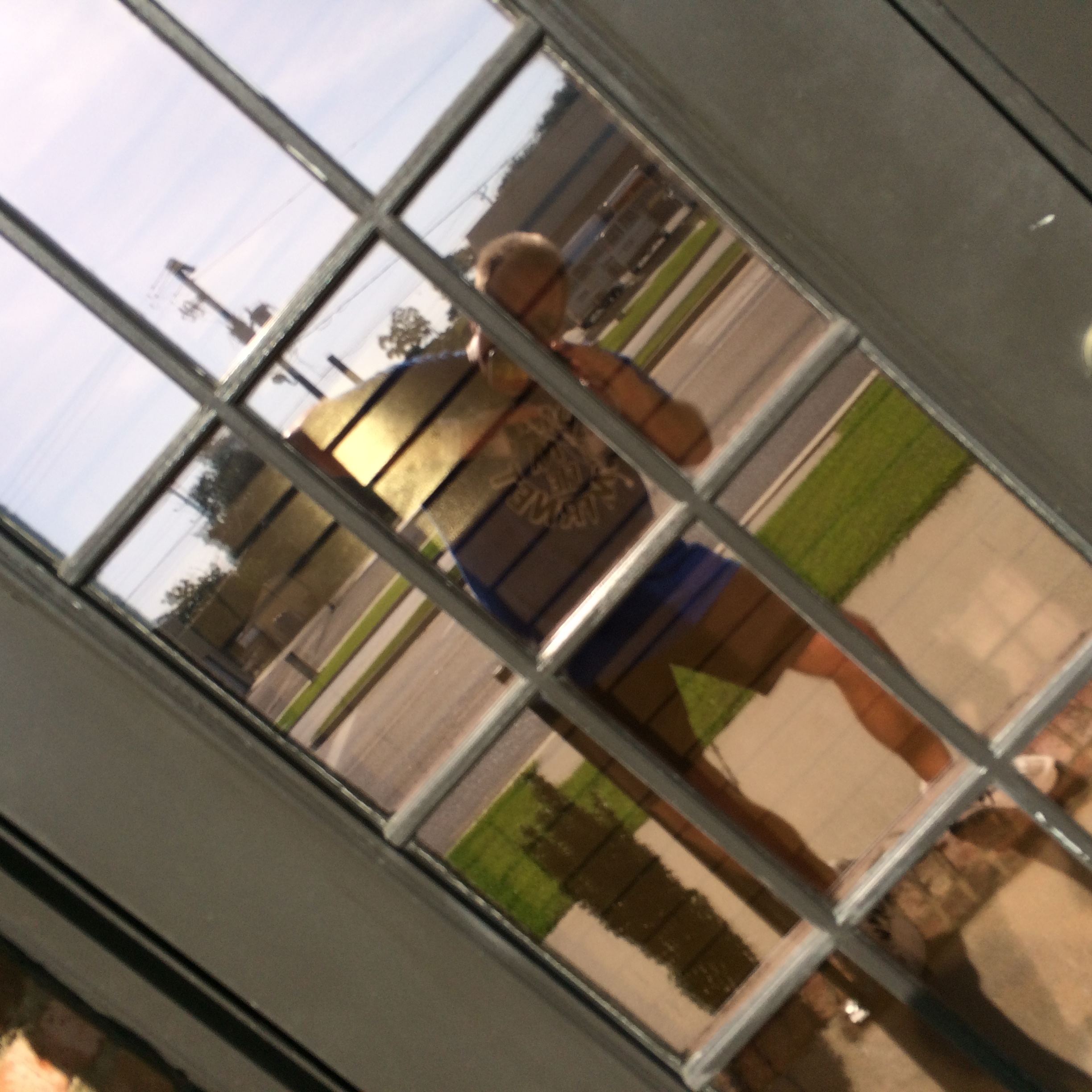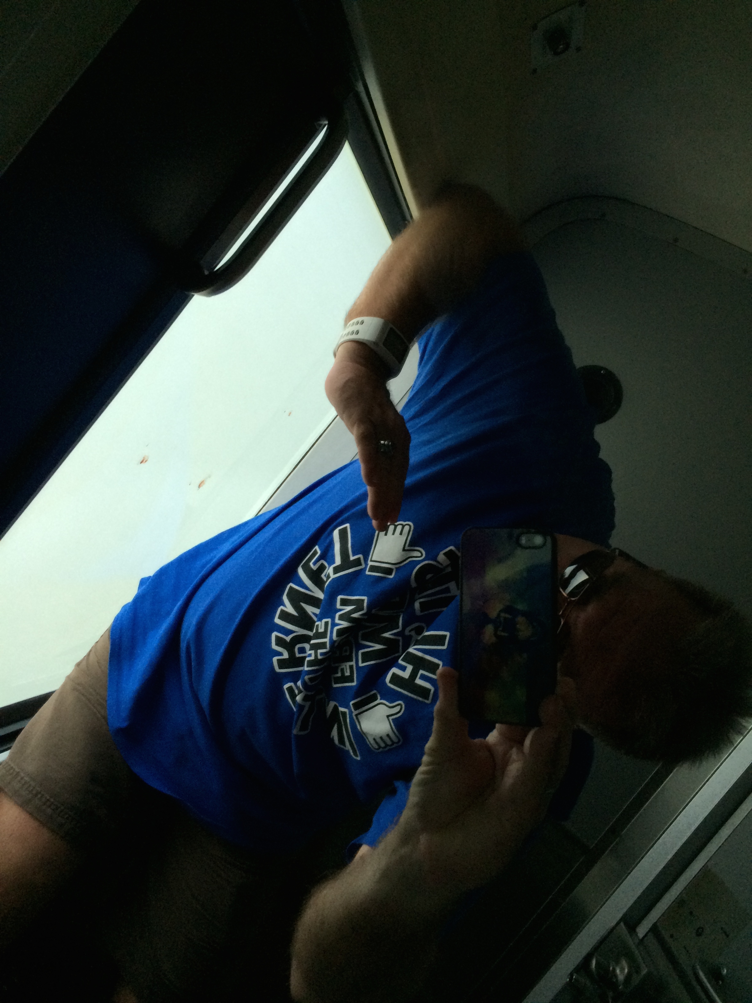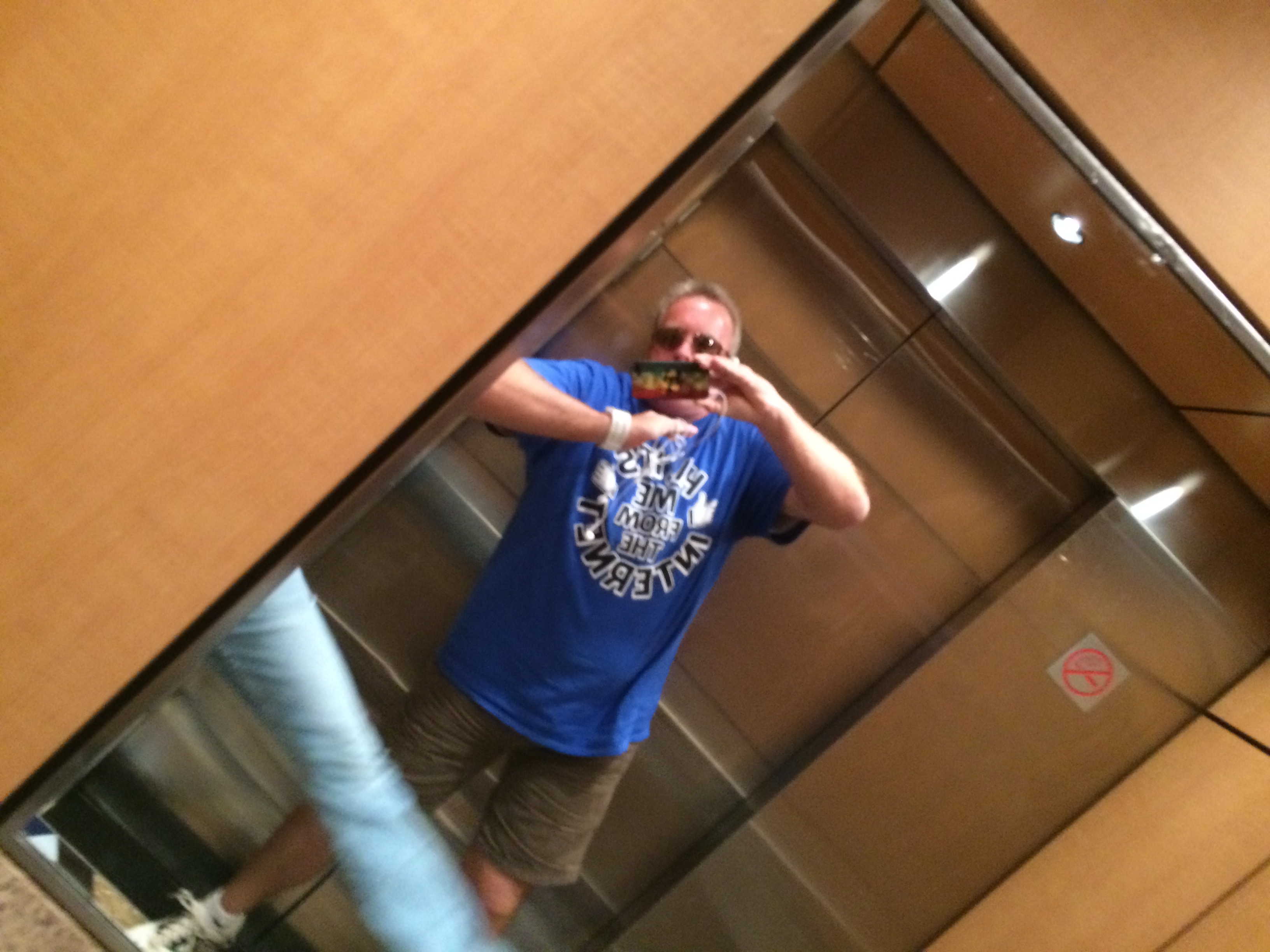 reading the logo on my shirt up close..