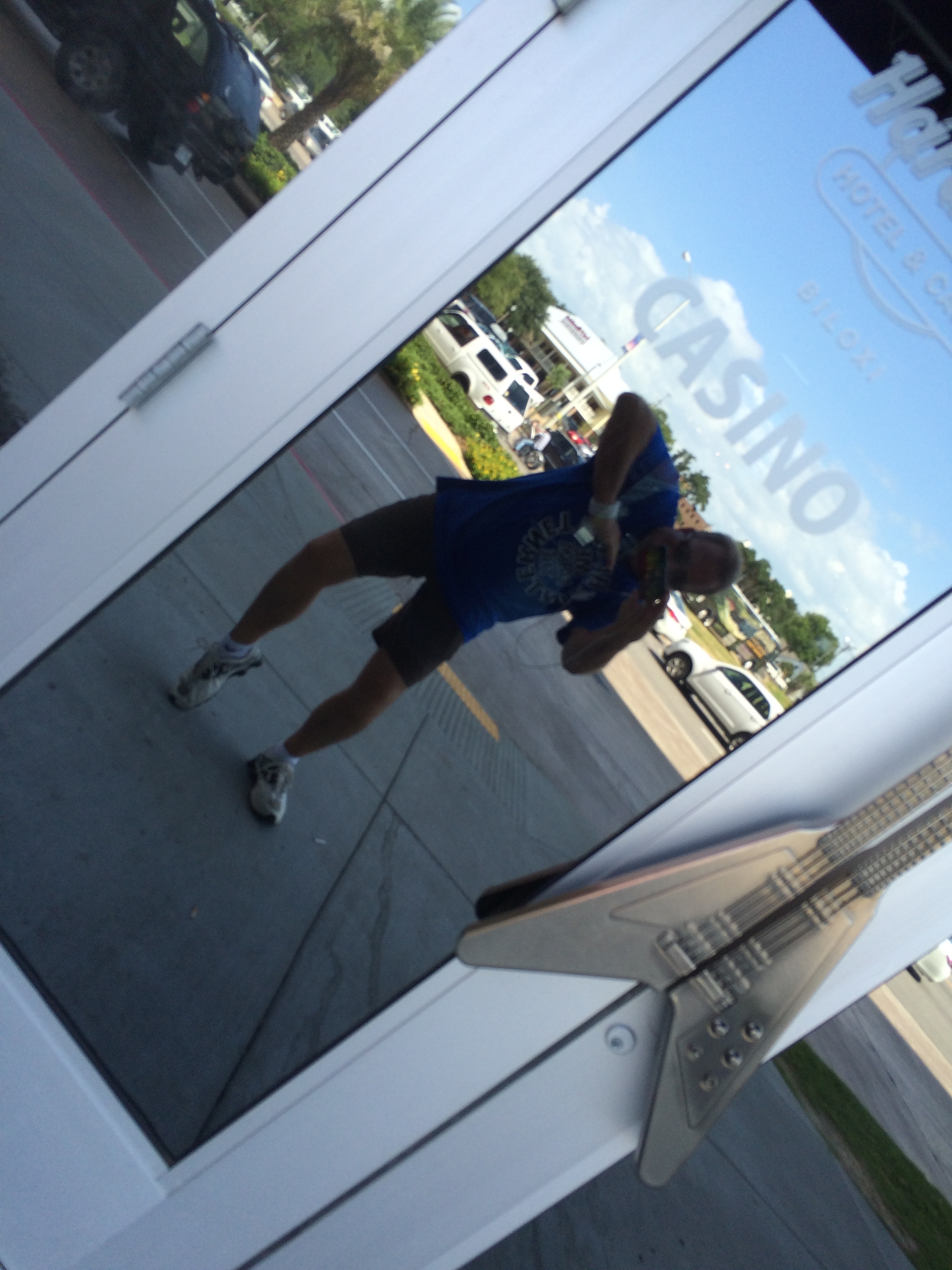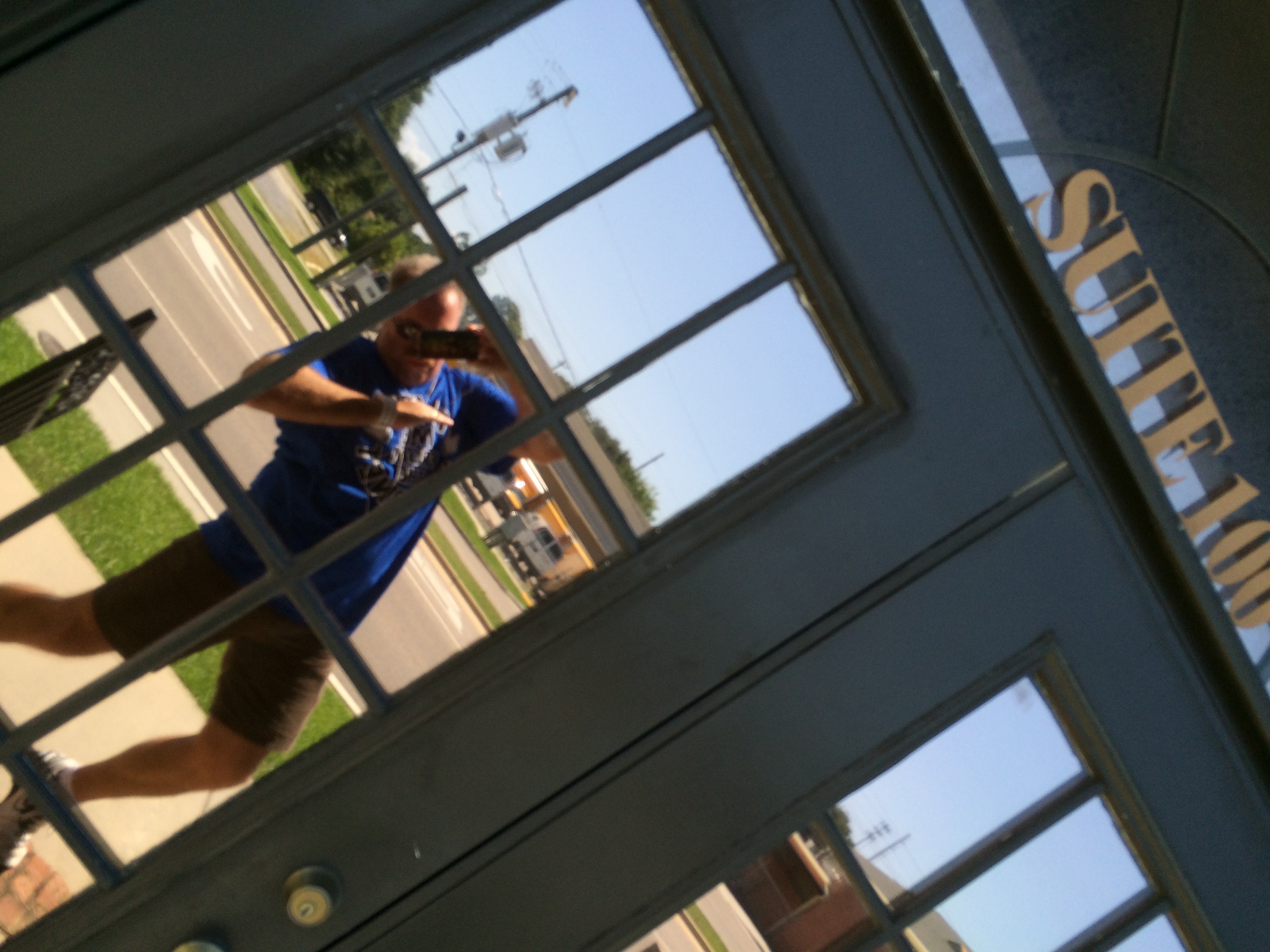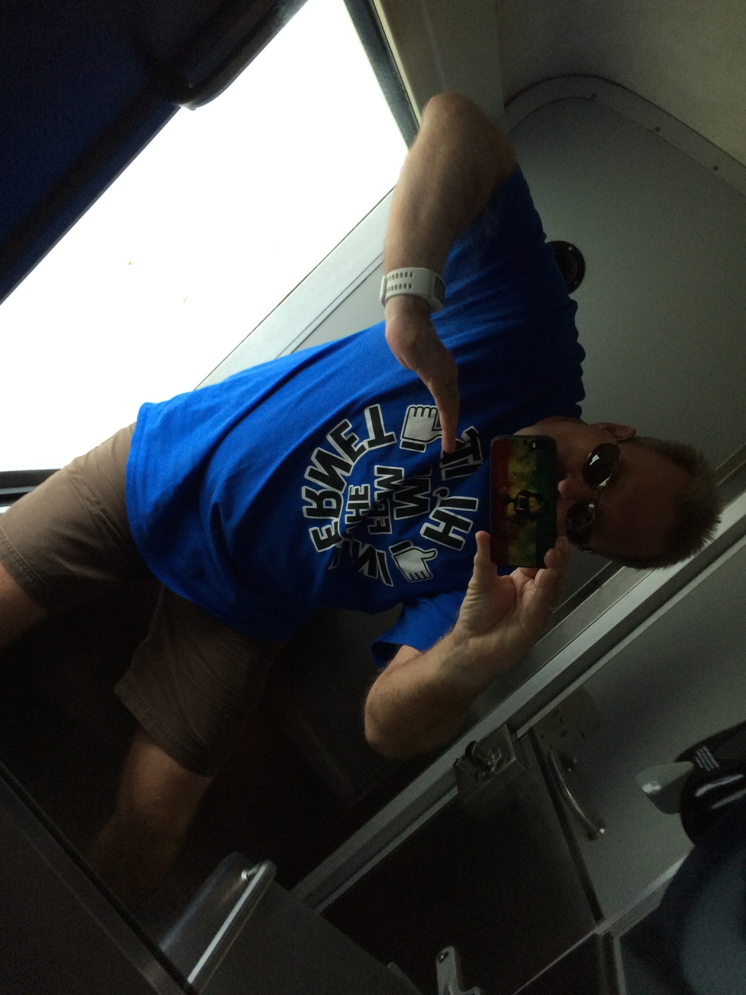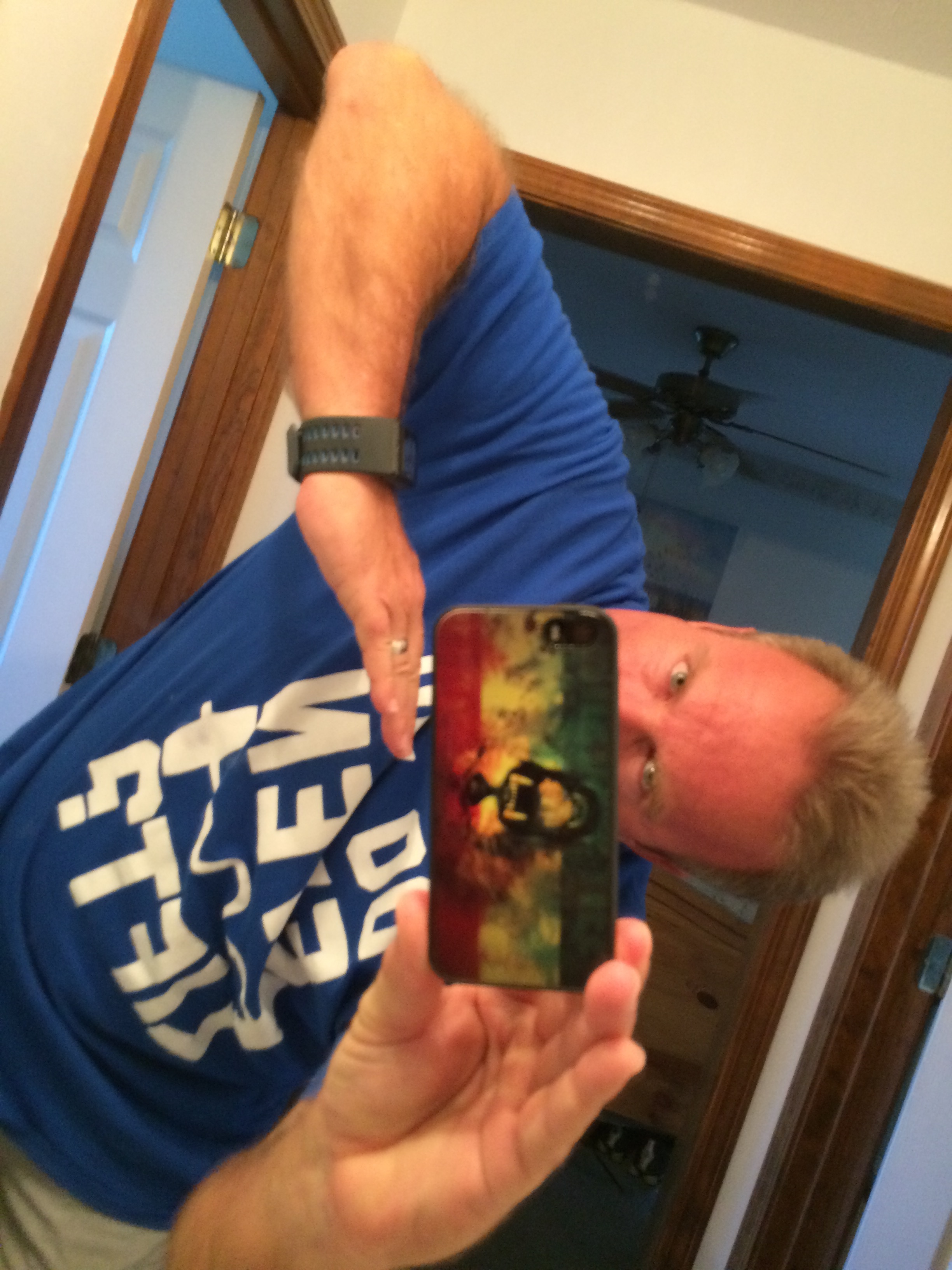 reading the logo on my shirt up close..