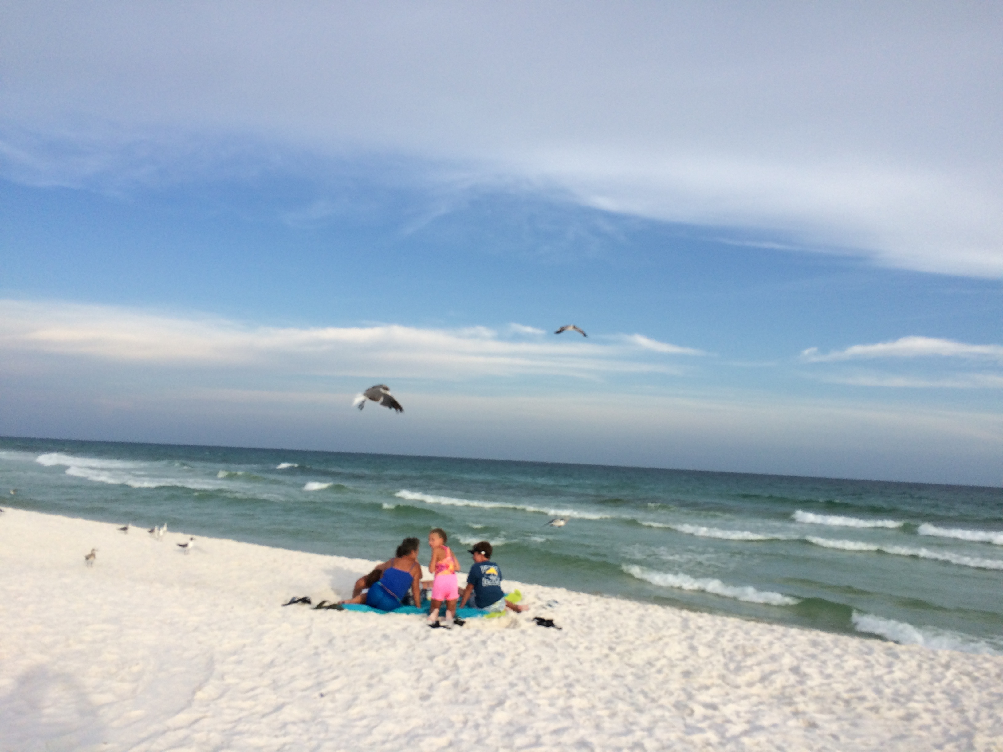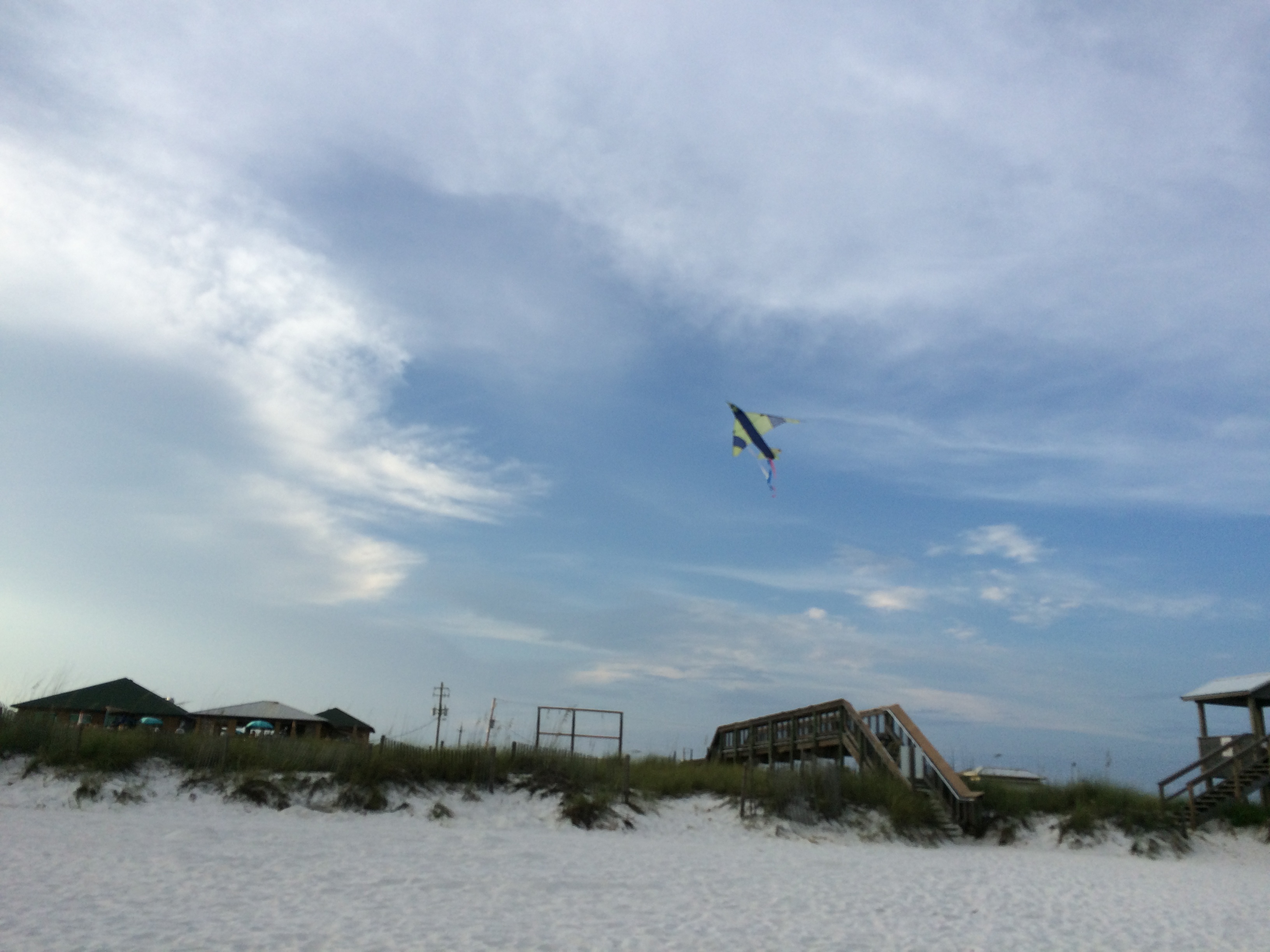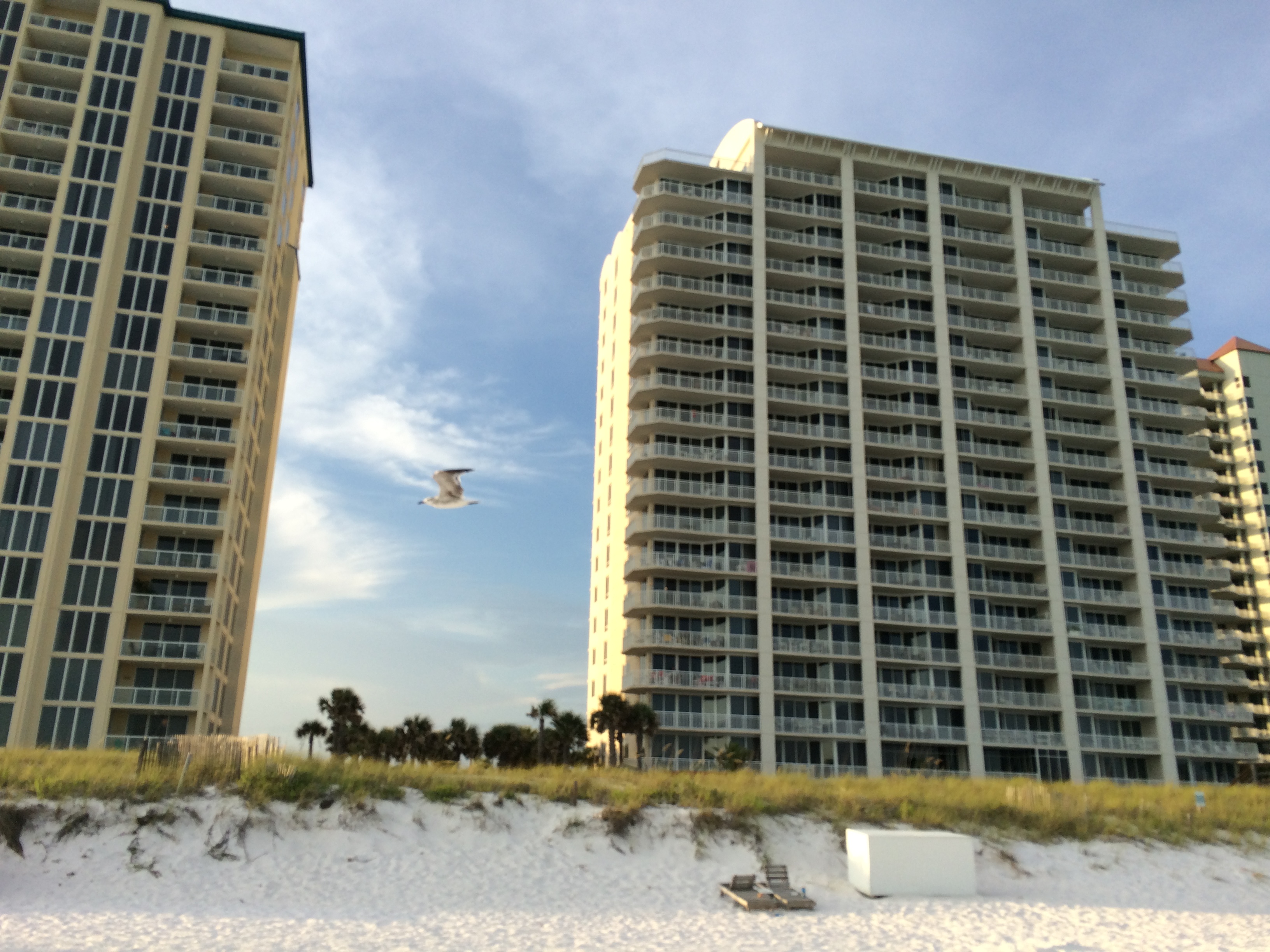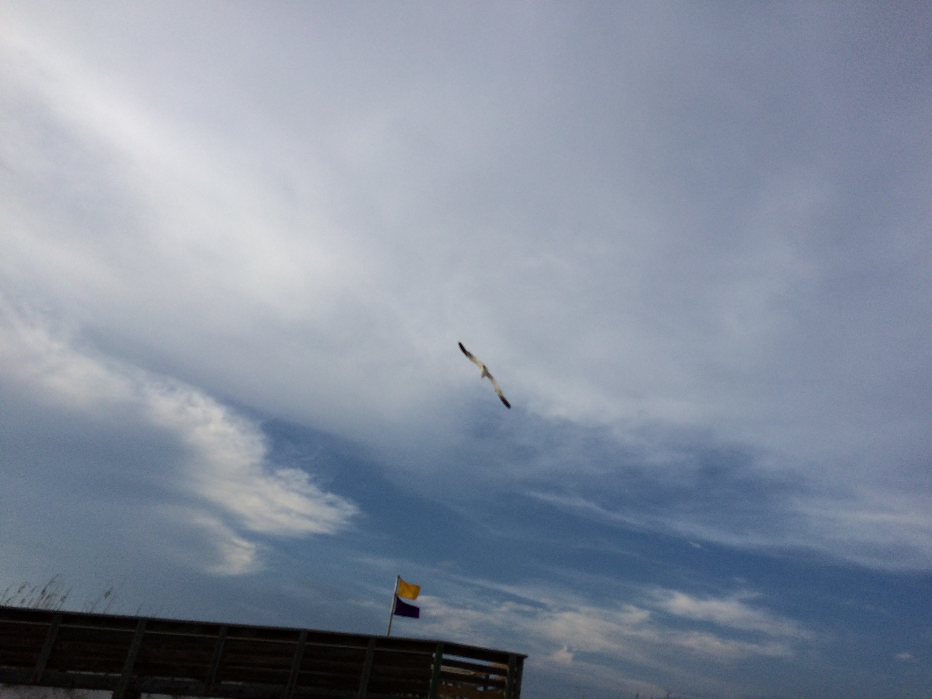 with sea oats swaying and seagulls in breeze..