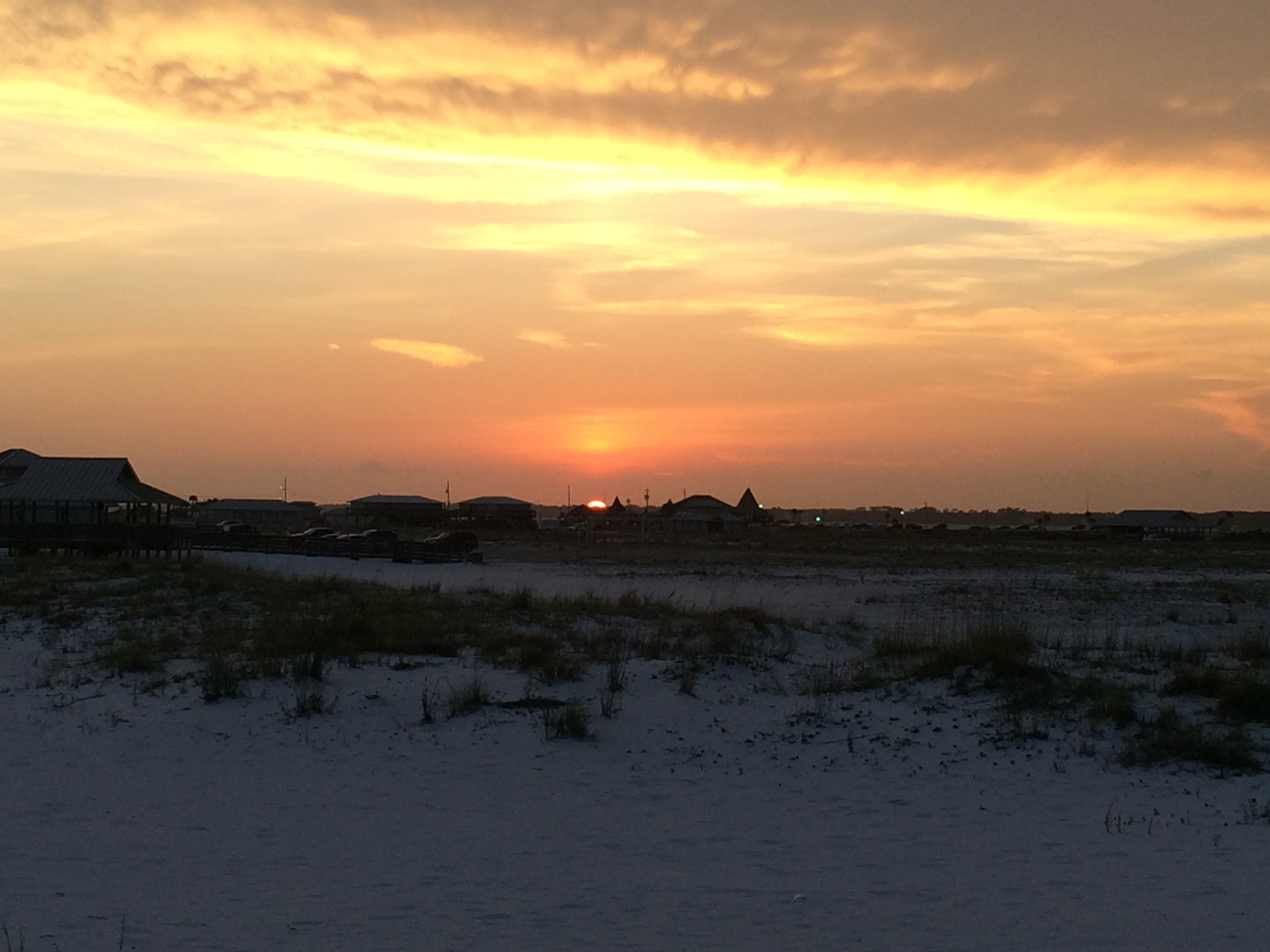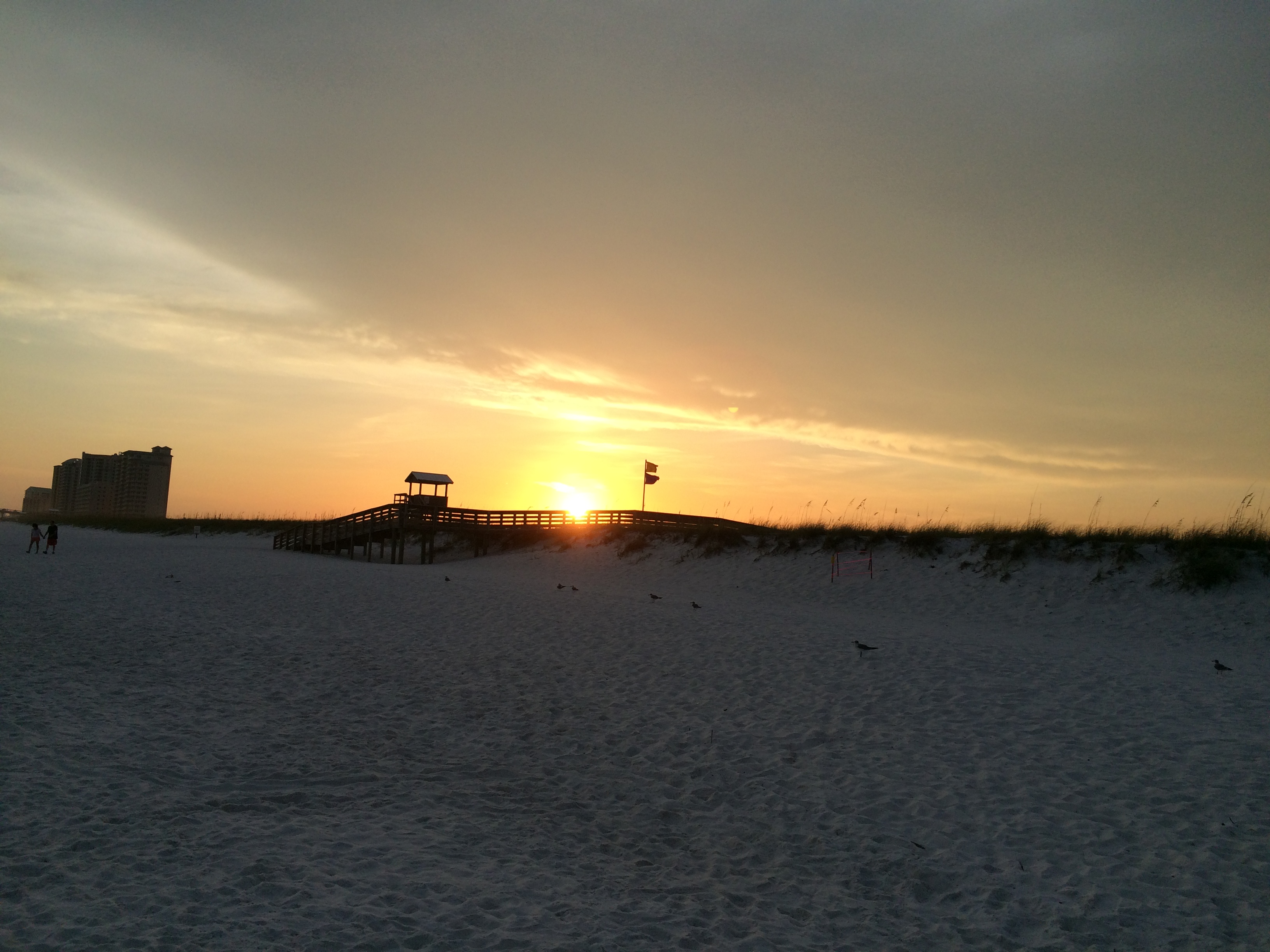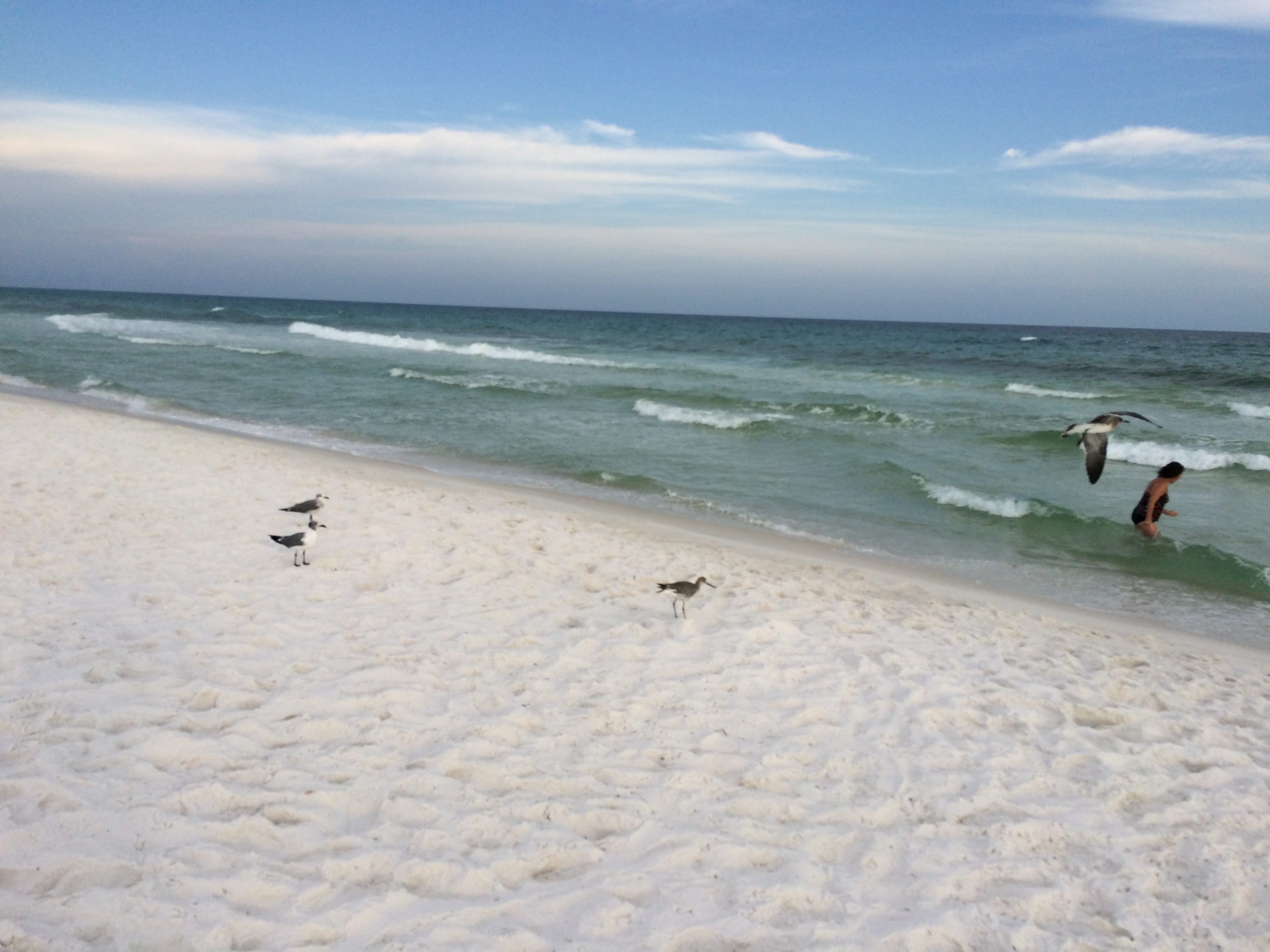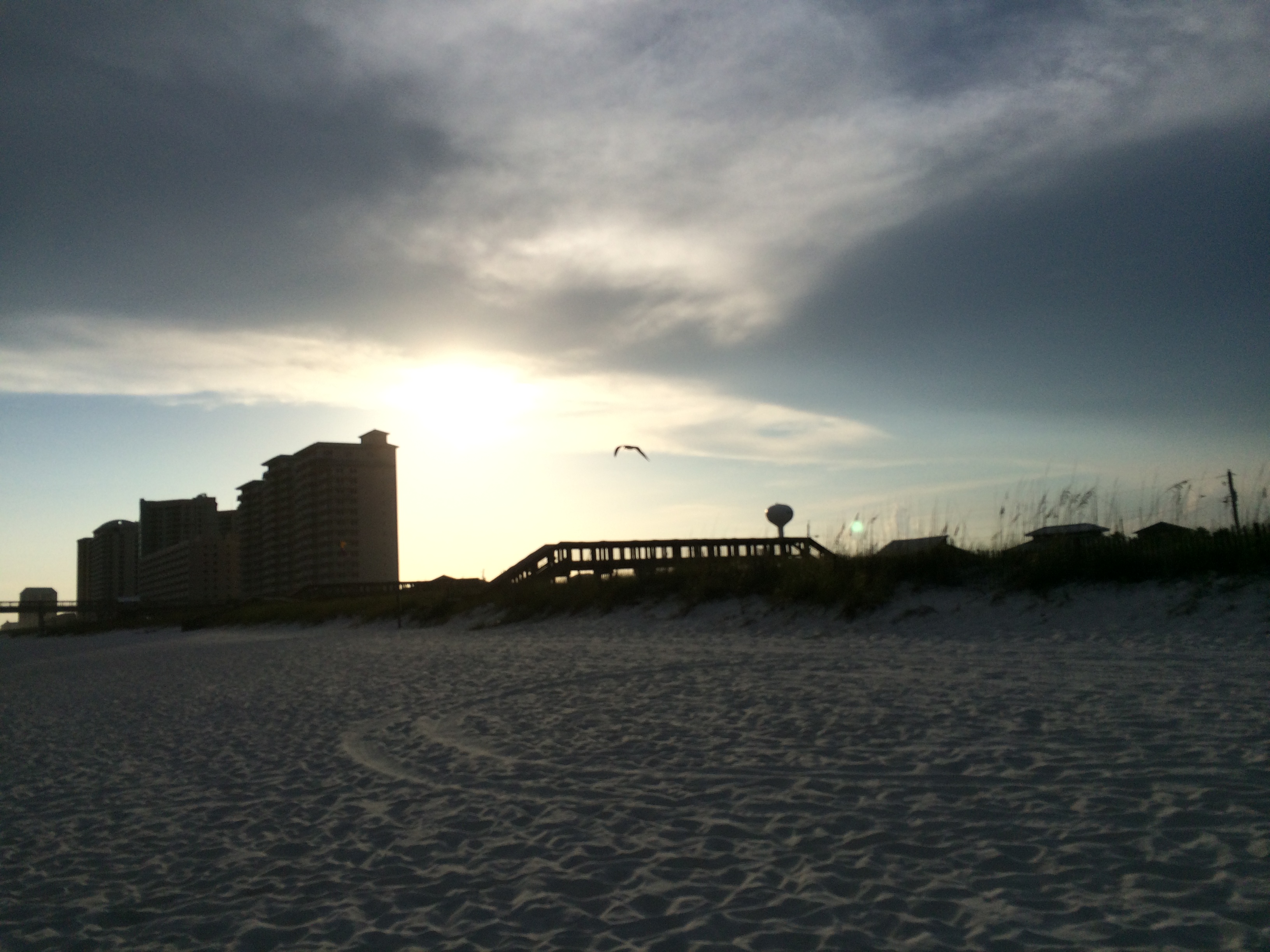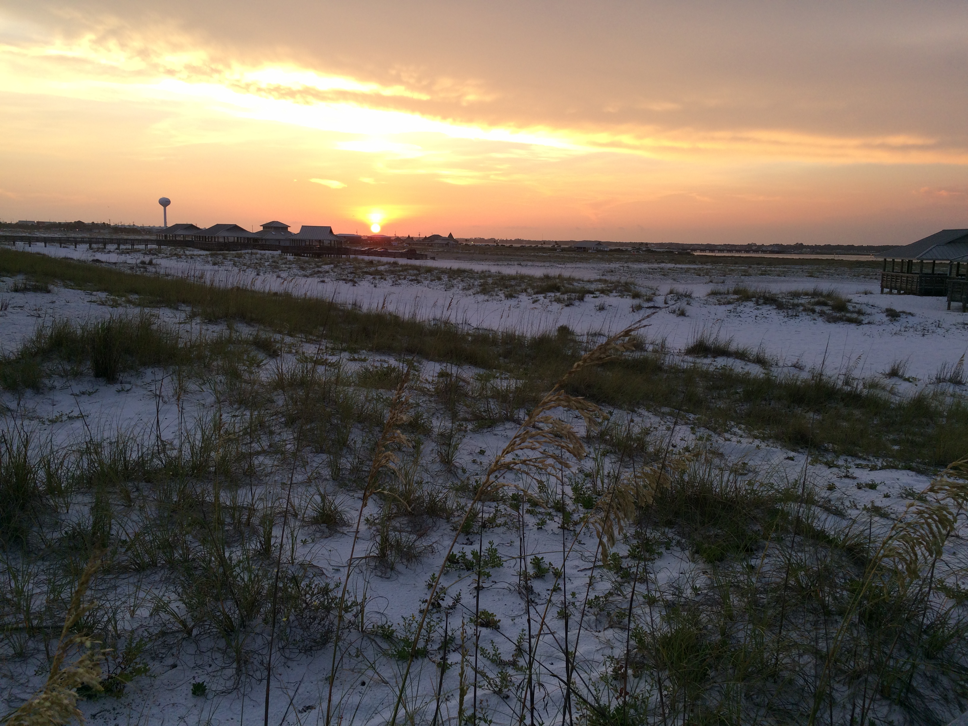 with sea oats swaying and seagulls in breeze..