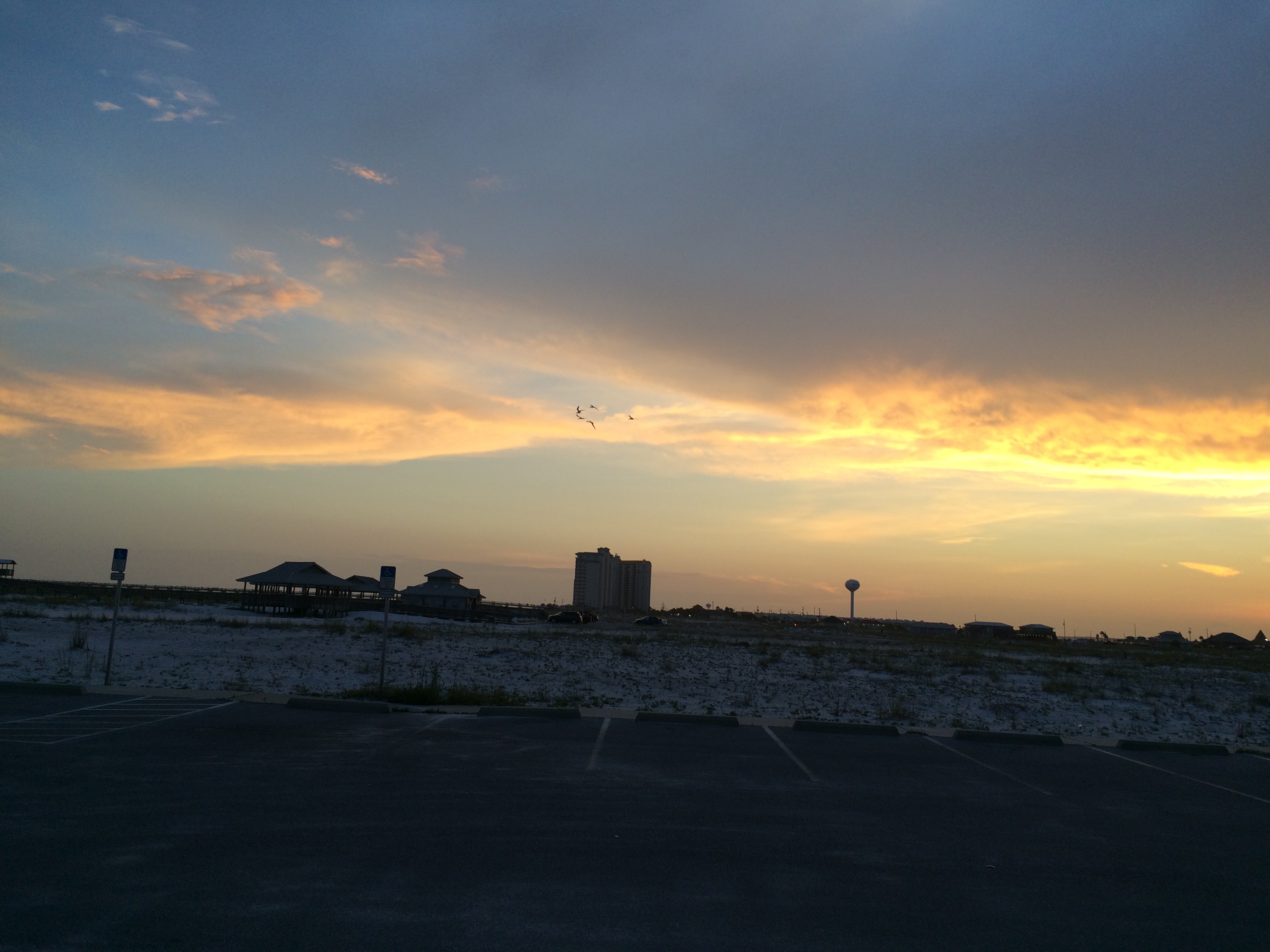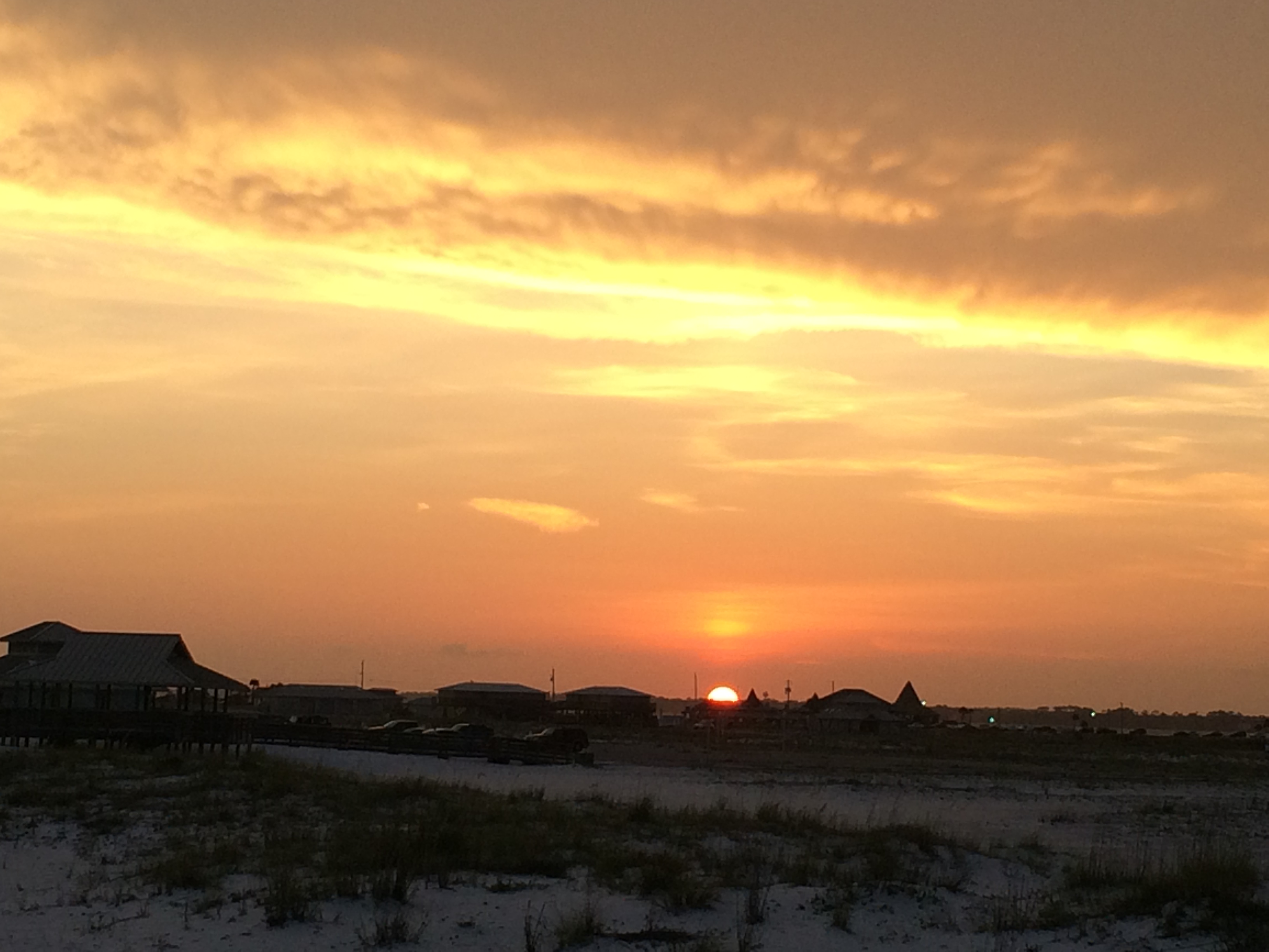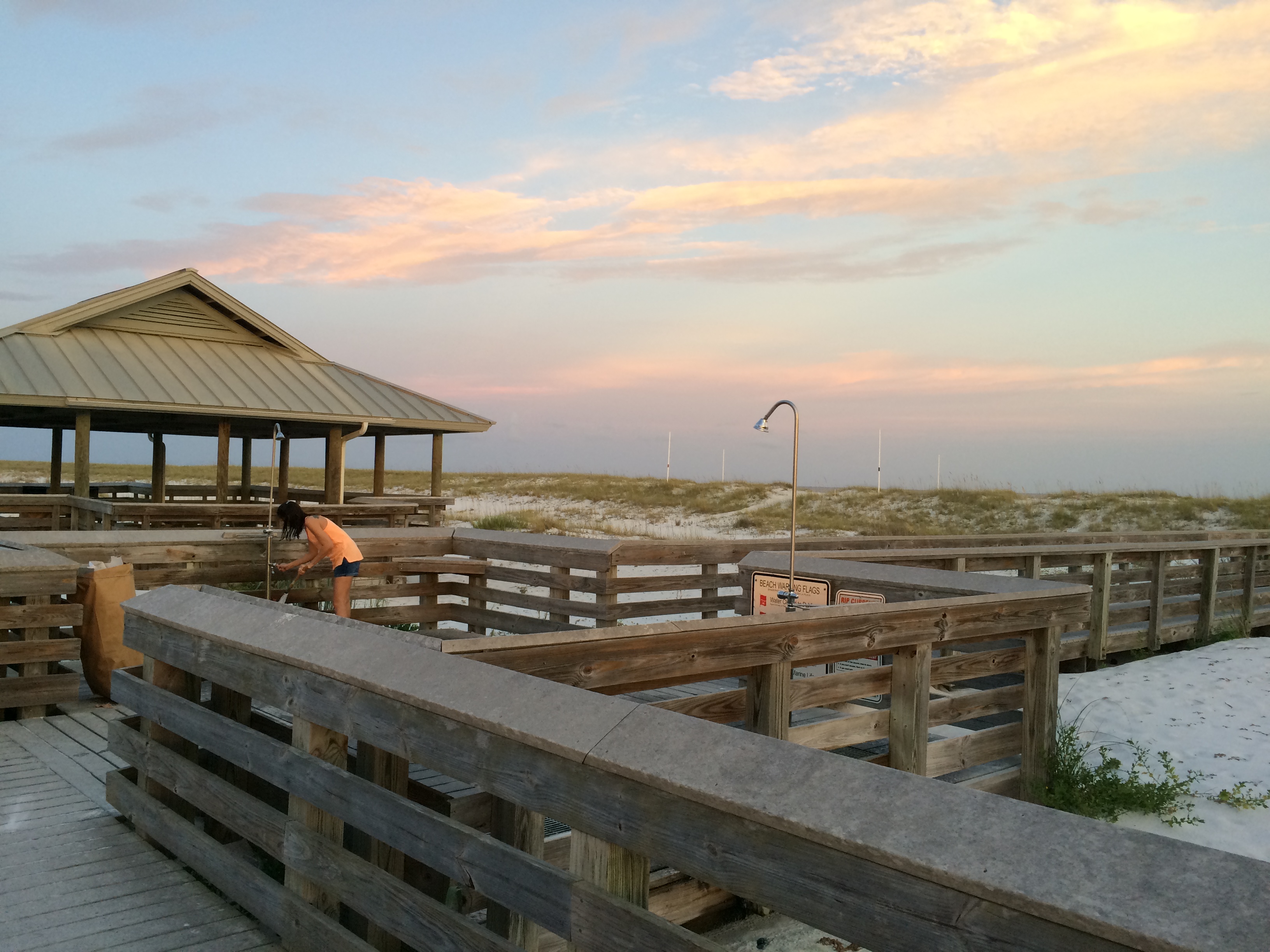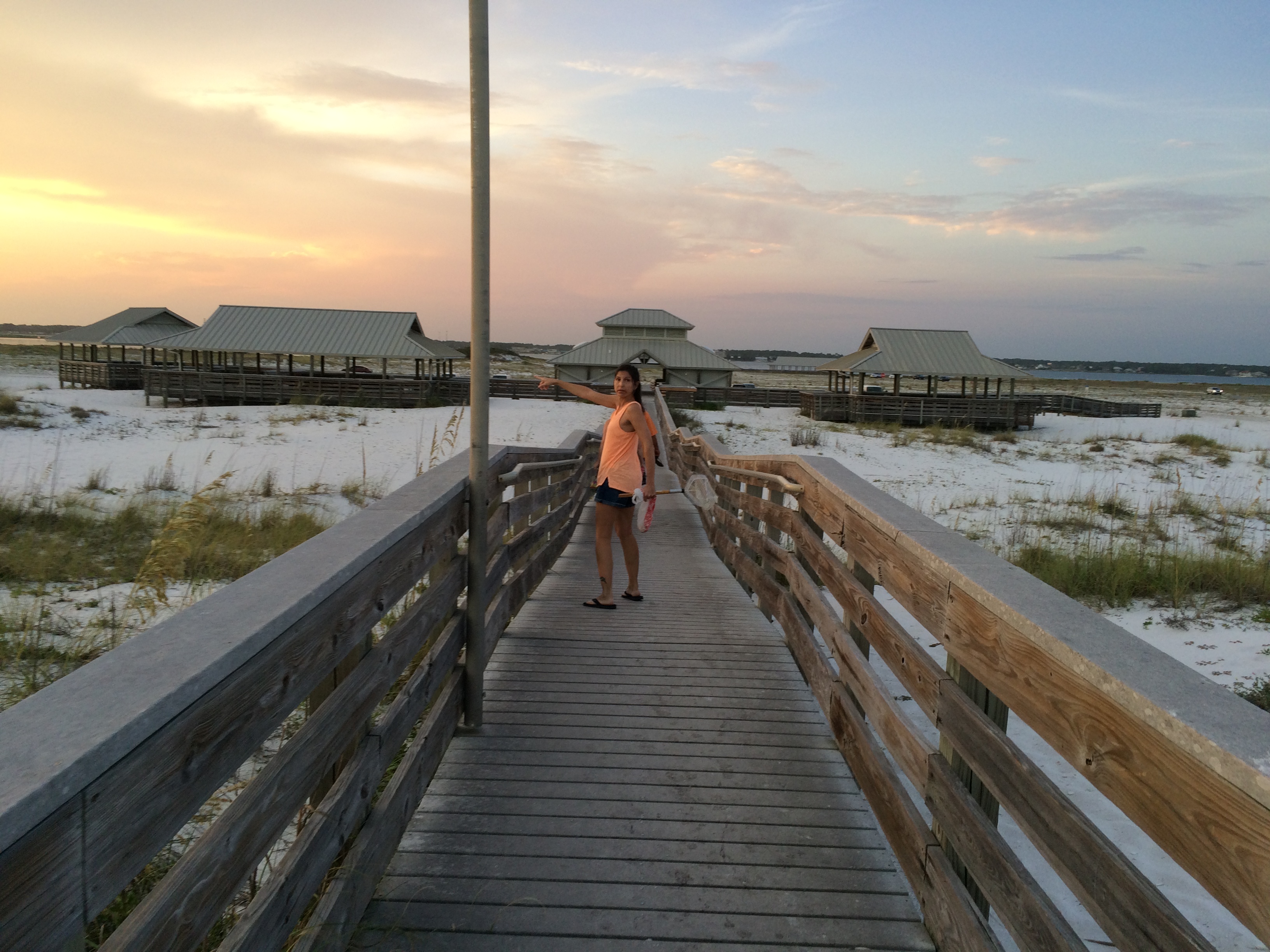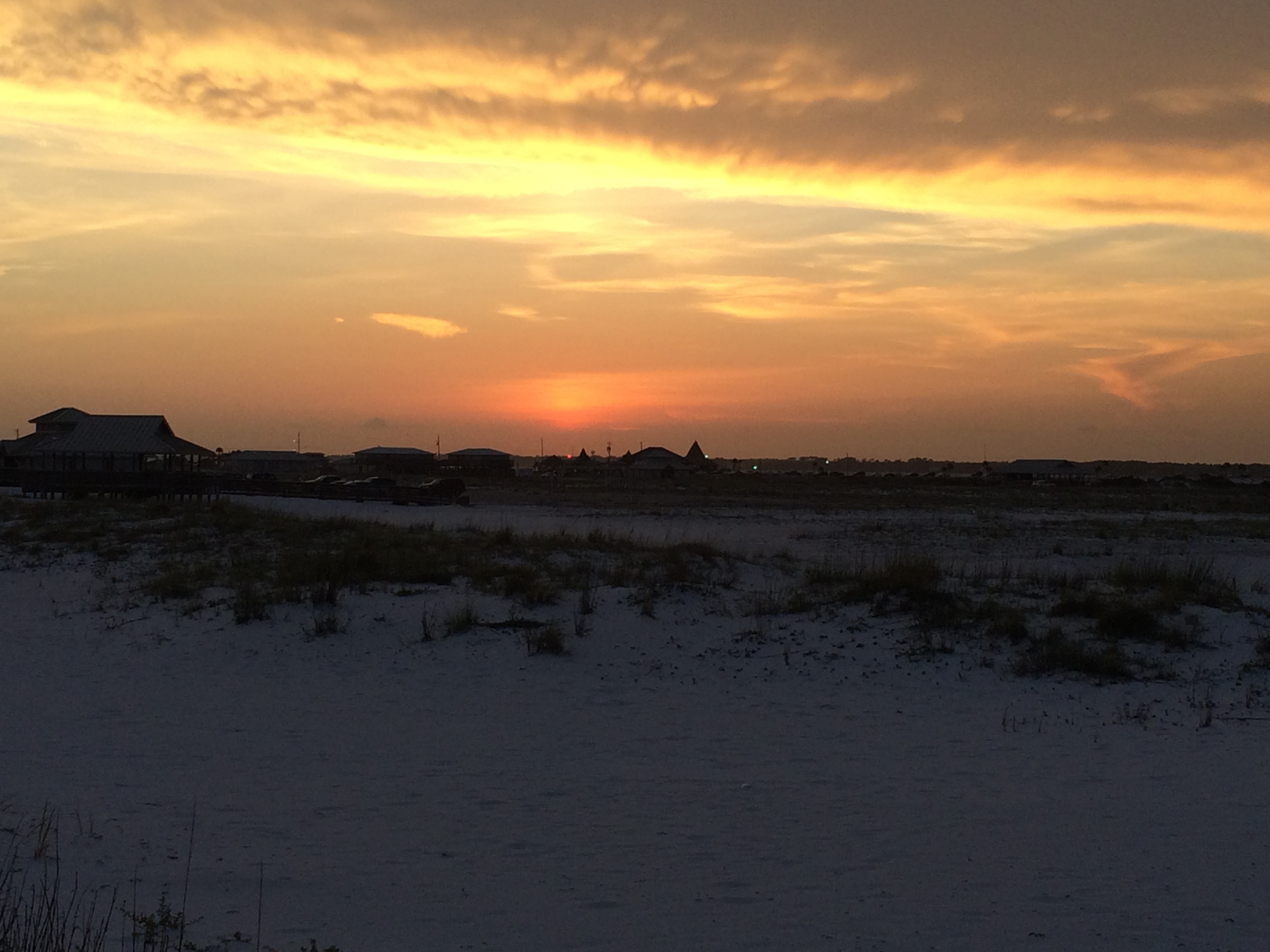 with sea oats swaying and seagulls in breeze..