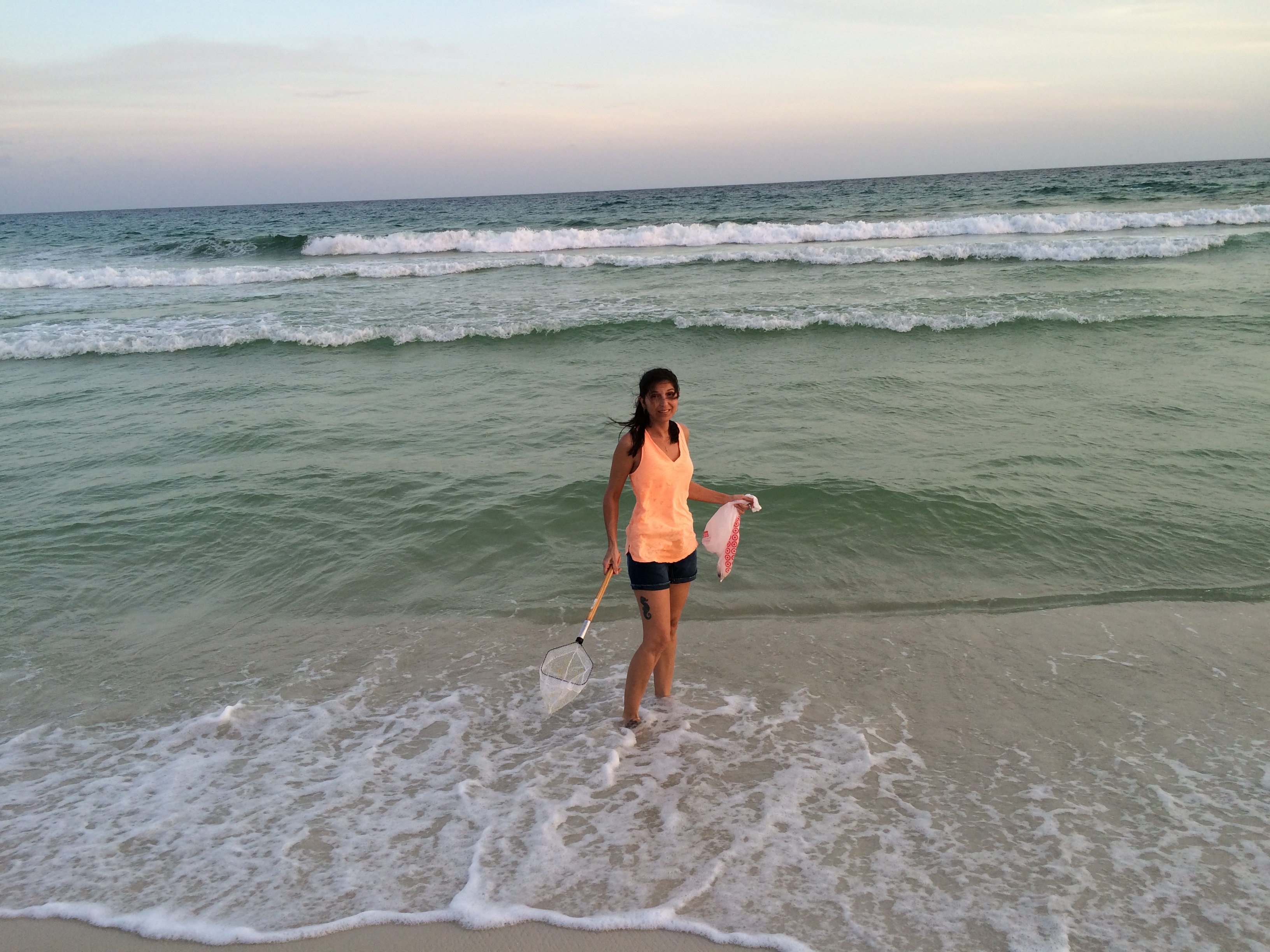 the beach and coming back up in the video..