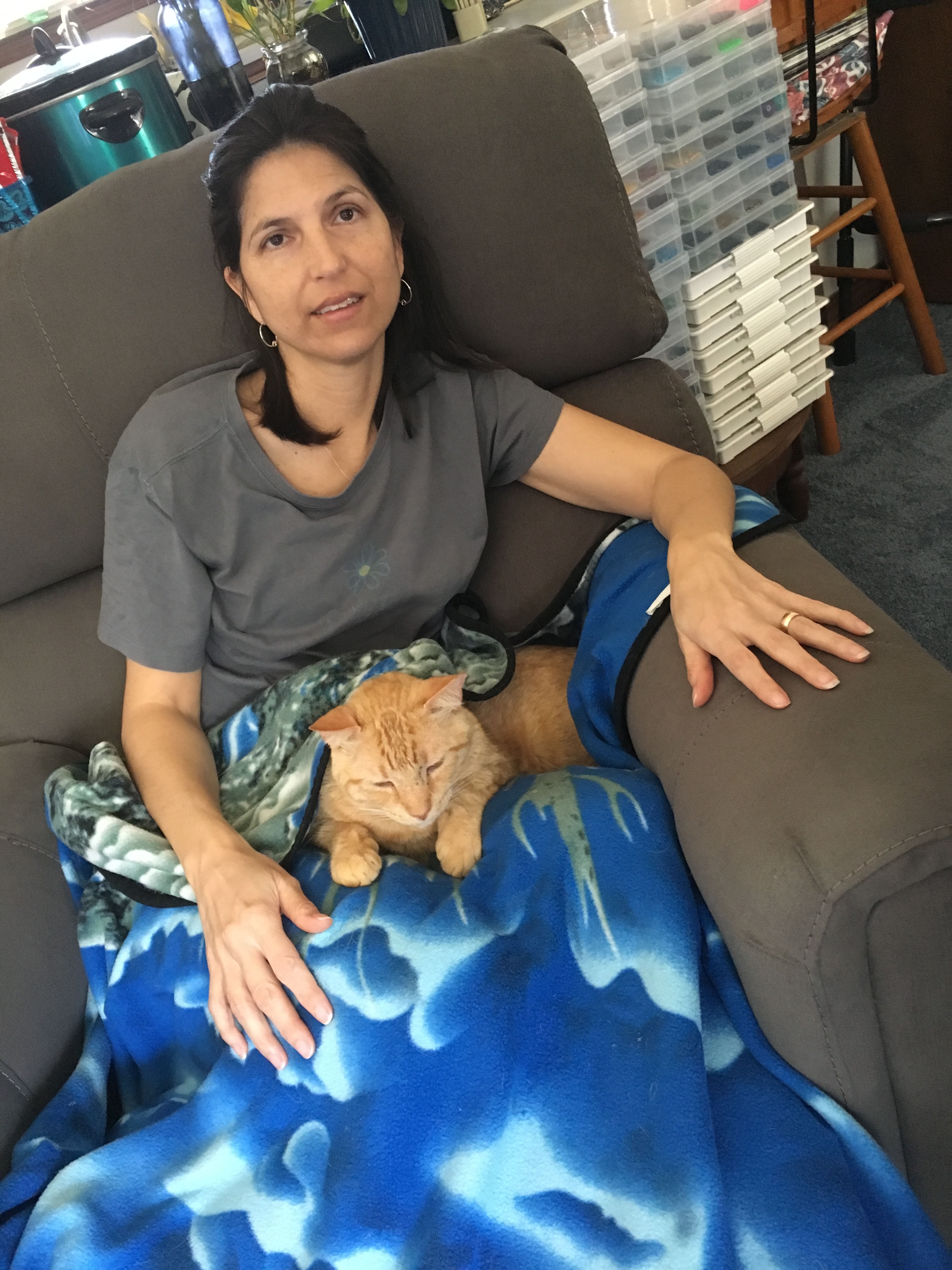 I suppose it is the immune system issues and chronic pain that has taken some of that gleam out of my eyes, but it still exists in the eyes in what I perceive of the anthropomorphic expression of the cat in my face book photo.
