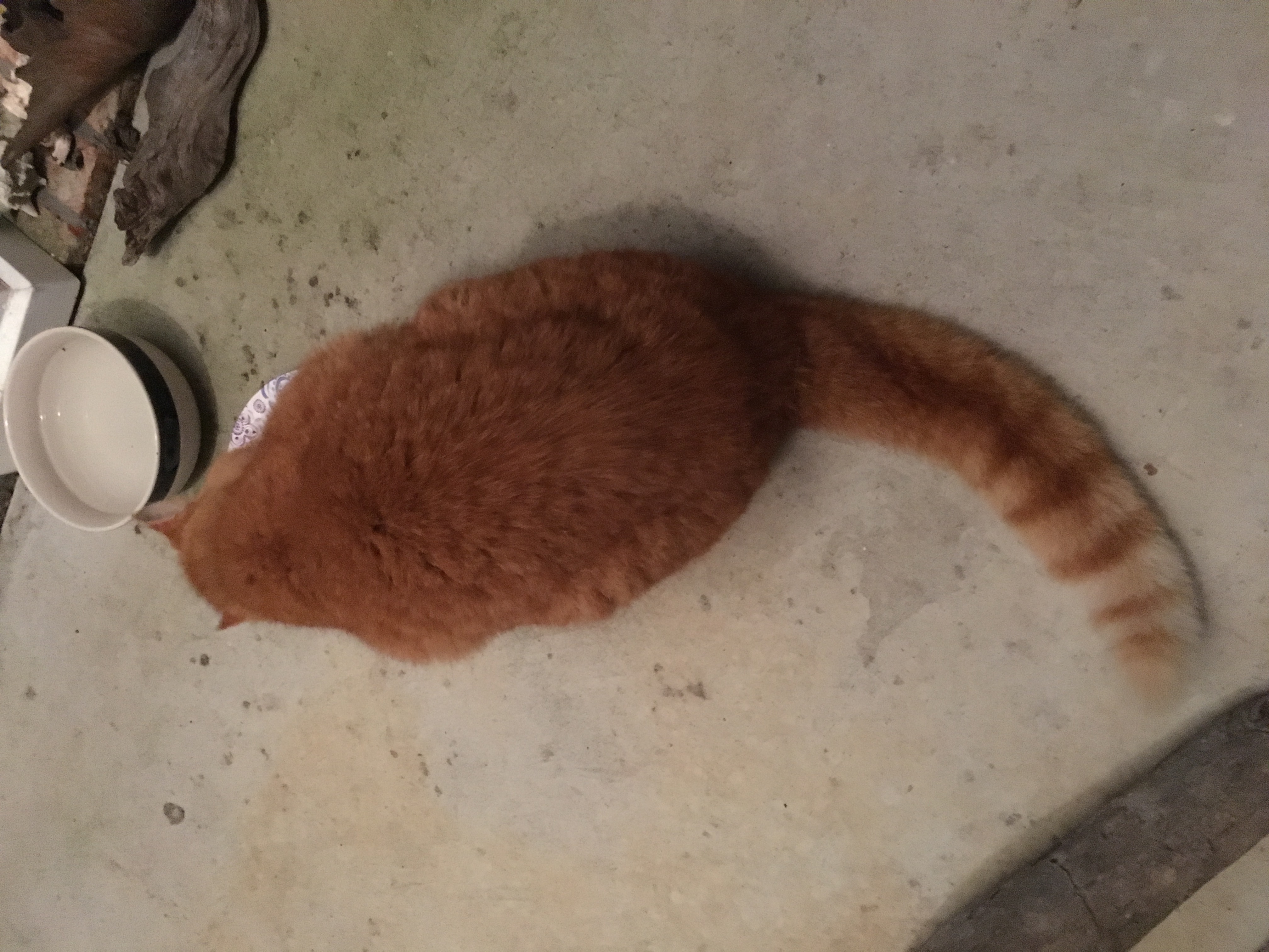 An identical yellow cat that likely is his offspring, younger and stronger appears intermittently out of the woods and started to injure our now neutered cat, racking up $200 dollar vet bills, every other week so the once feral cat has now been forced to become a fully inside cat.